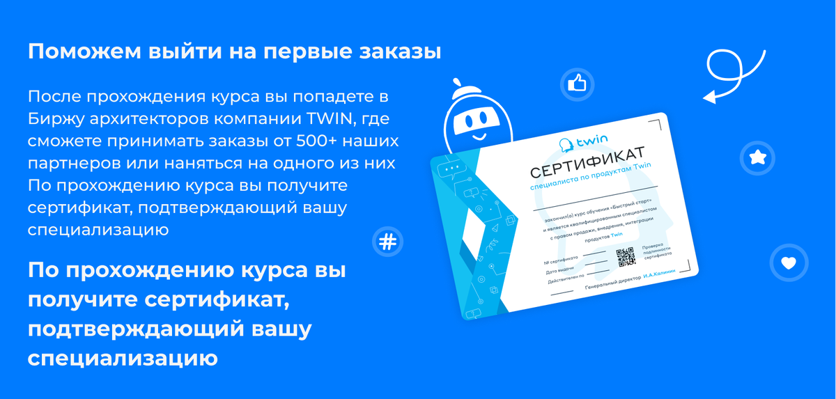 + Получение права реселлера на платформе TWIN после аттестации на курсе «Профессия Специалист TWIN»